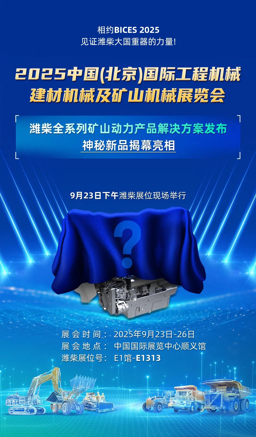 9月23日,全球工程機械行業(yè)矚目的2025中國(北京)國際工程機械建材機械及礦山機械展覽會(簡稱BICES 2025)震撼啟幕。濰柴攜全系列礦山動力產(chǎn)品解決方案重磅亮相,濰柴展位號:E1館-E1313,誠邀蒞臨。